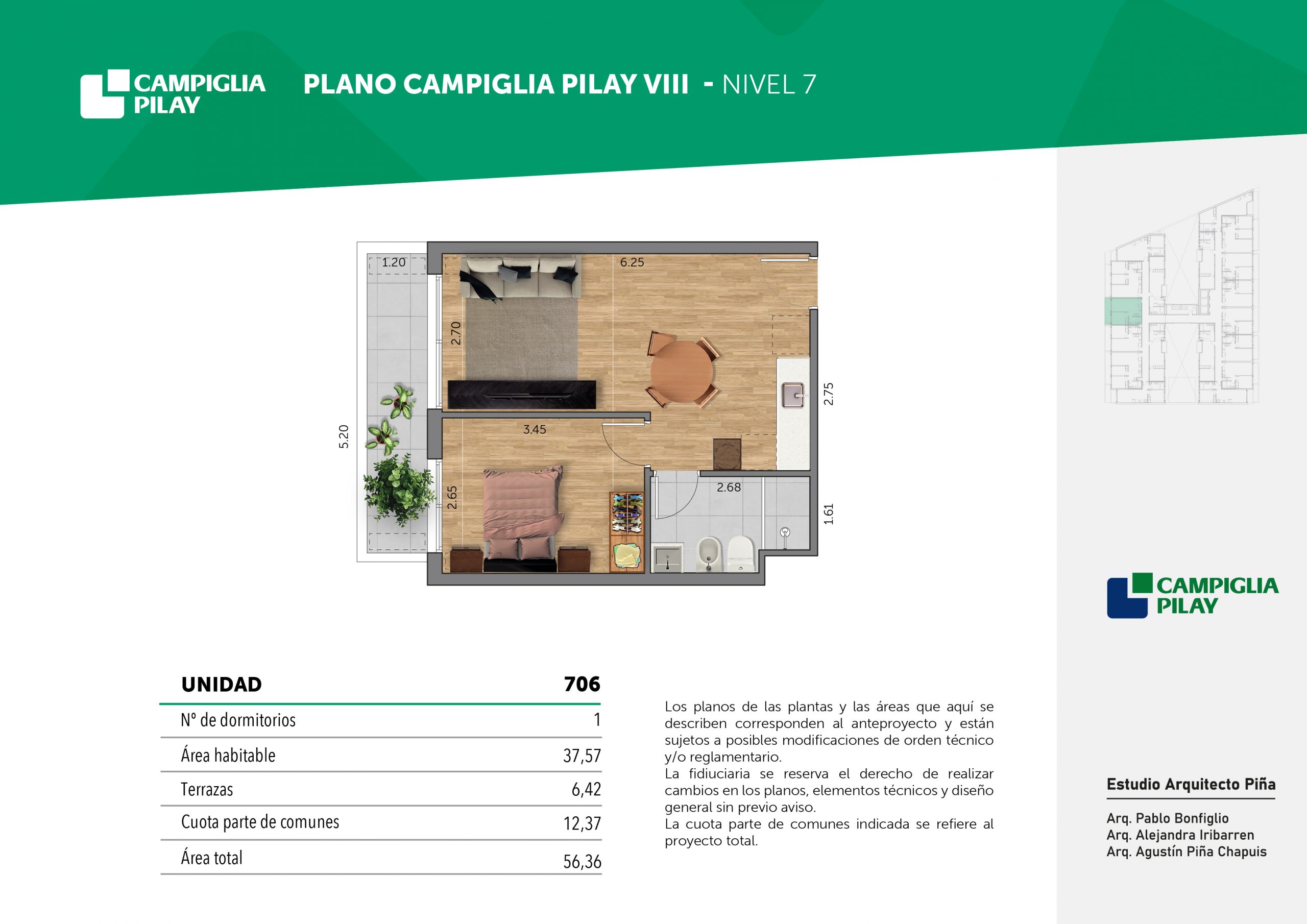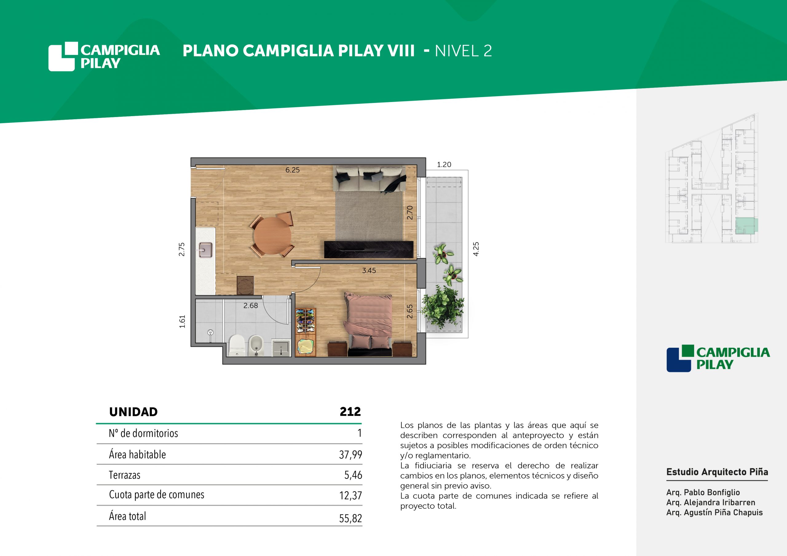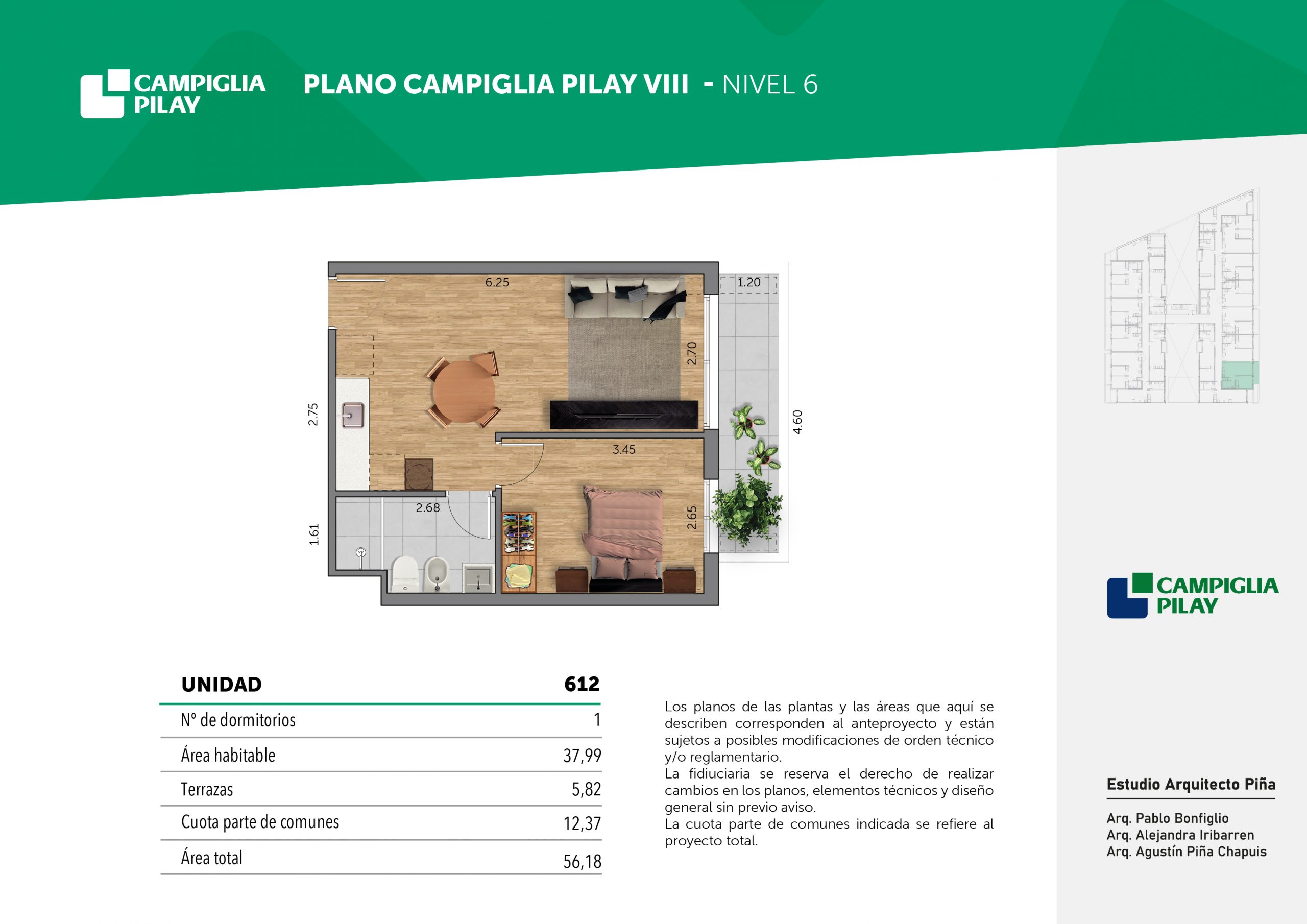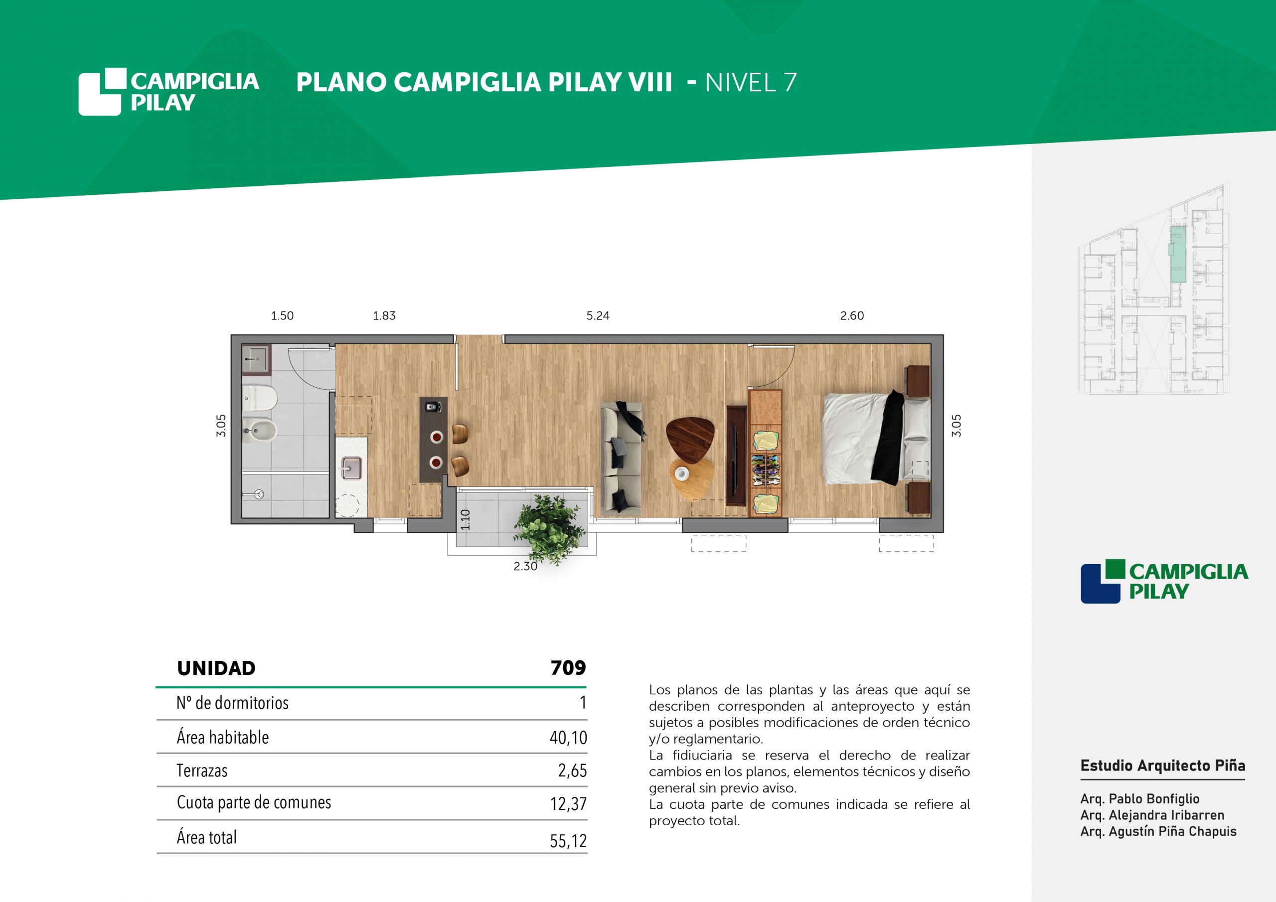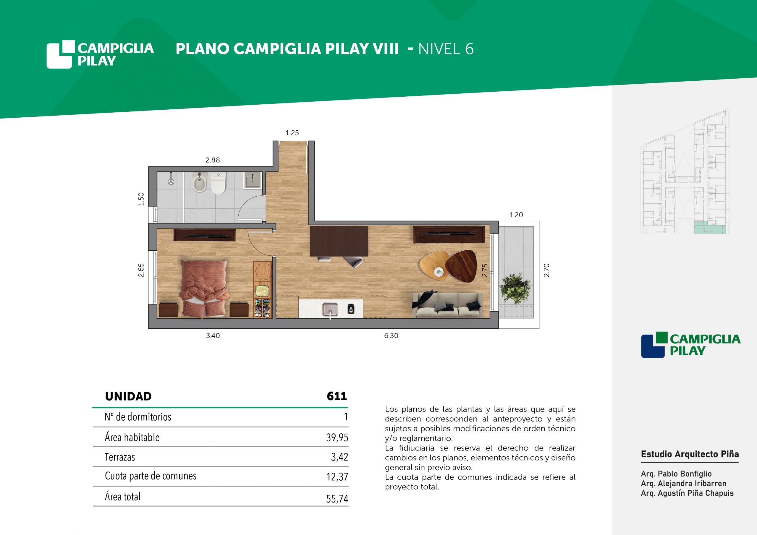 Cantidad de unidades en total: 195 unidades (159 unidades de 1 dormitorio y 46 unidades de 34 dormitorios) + 118 cocheras en total (aprox).