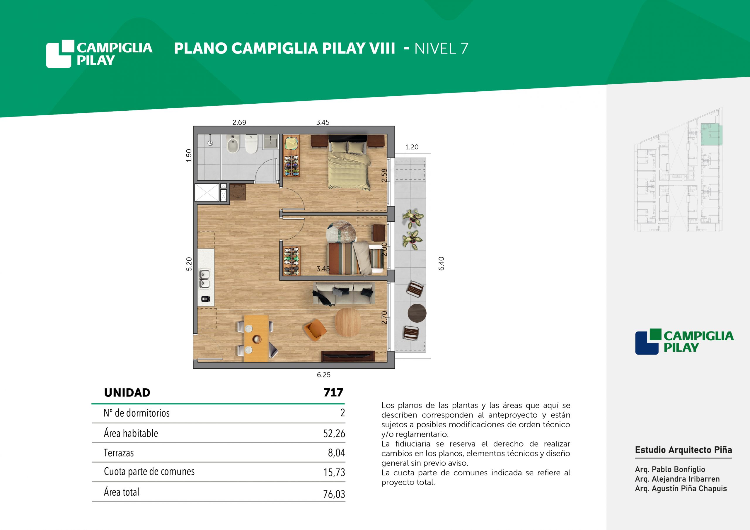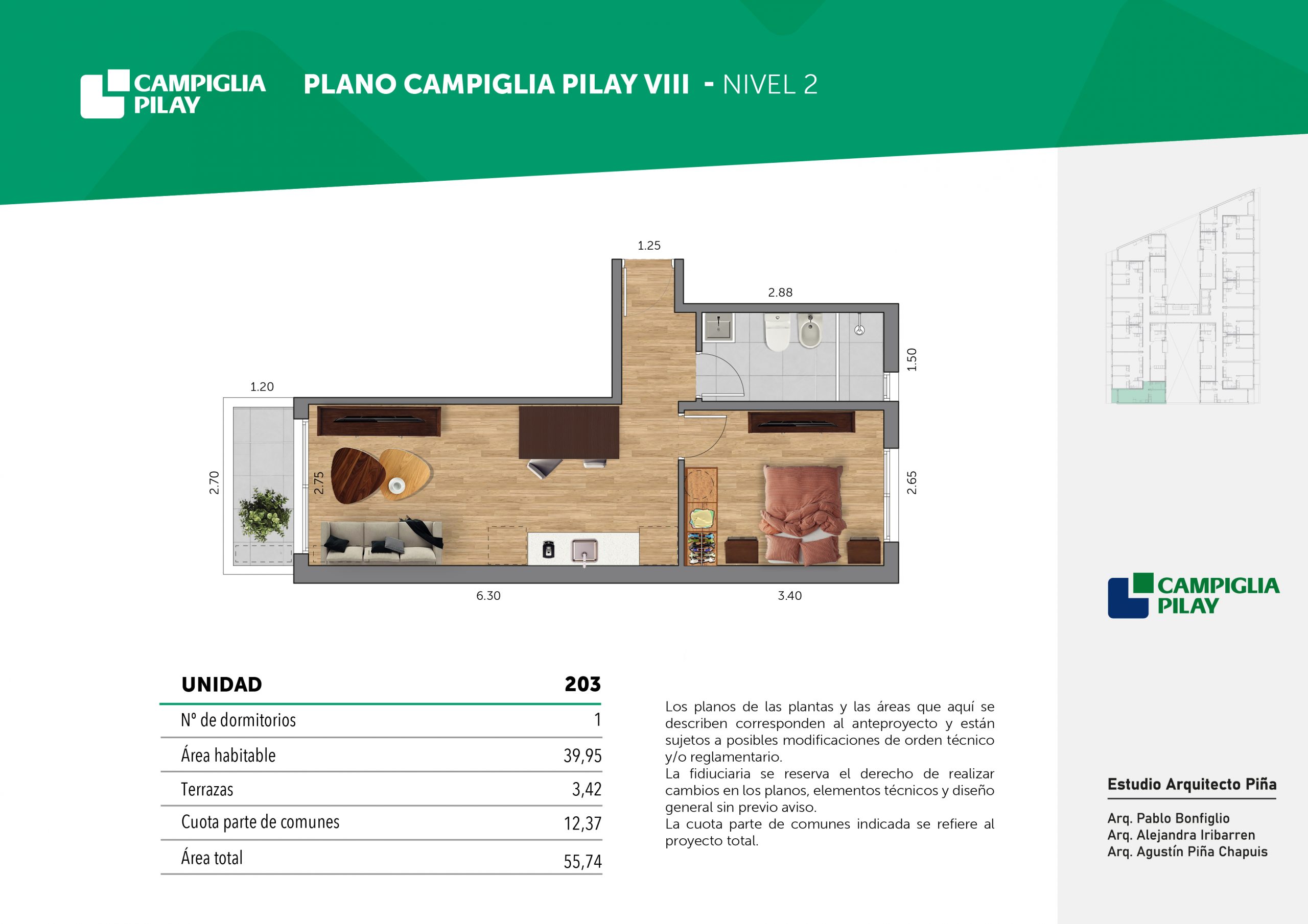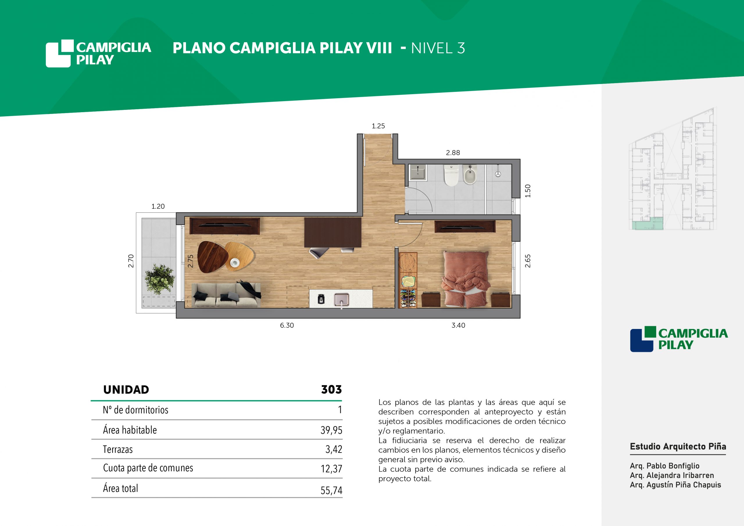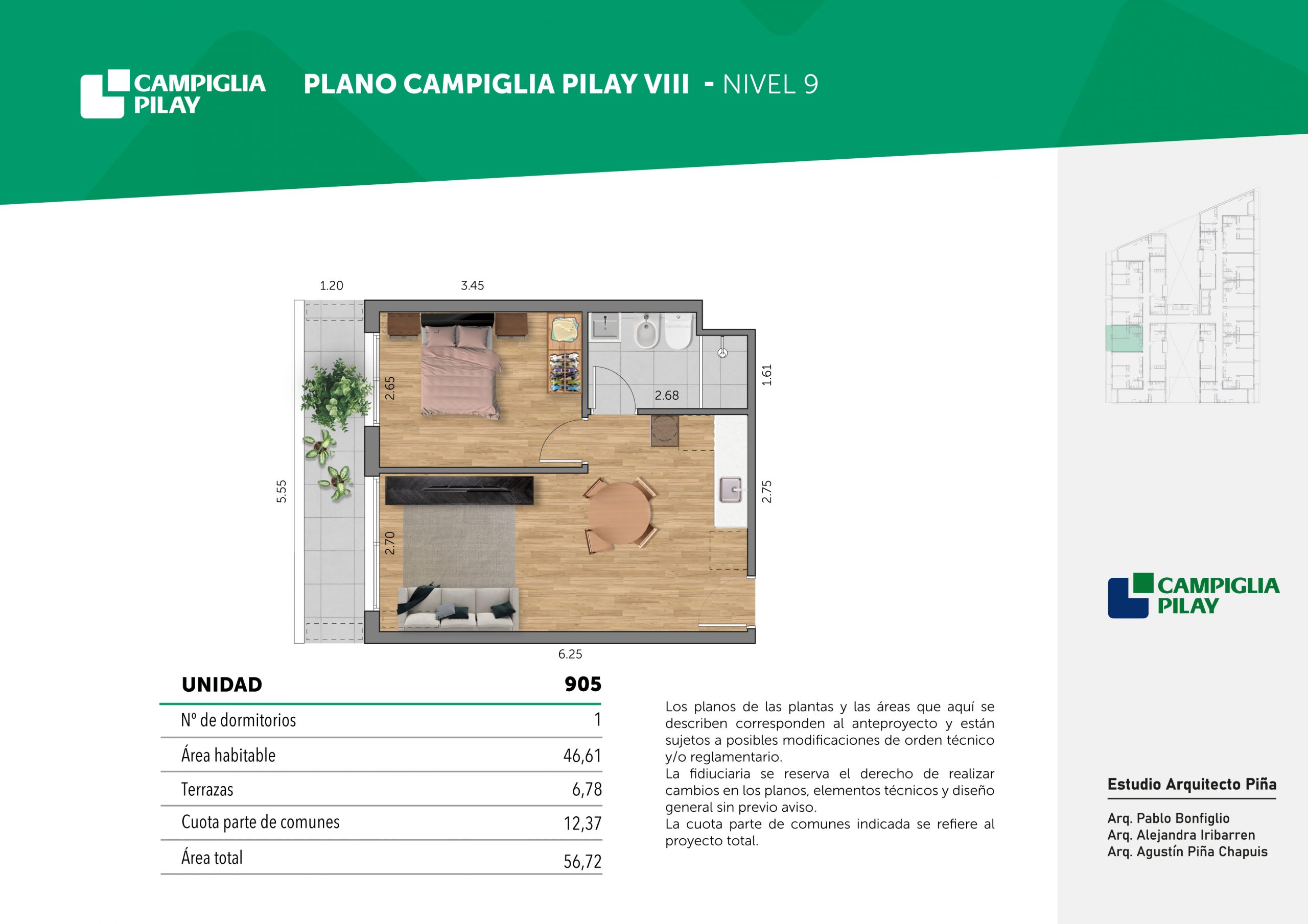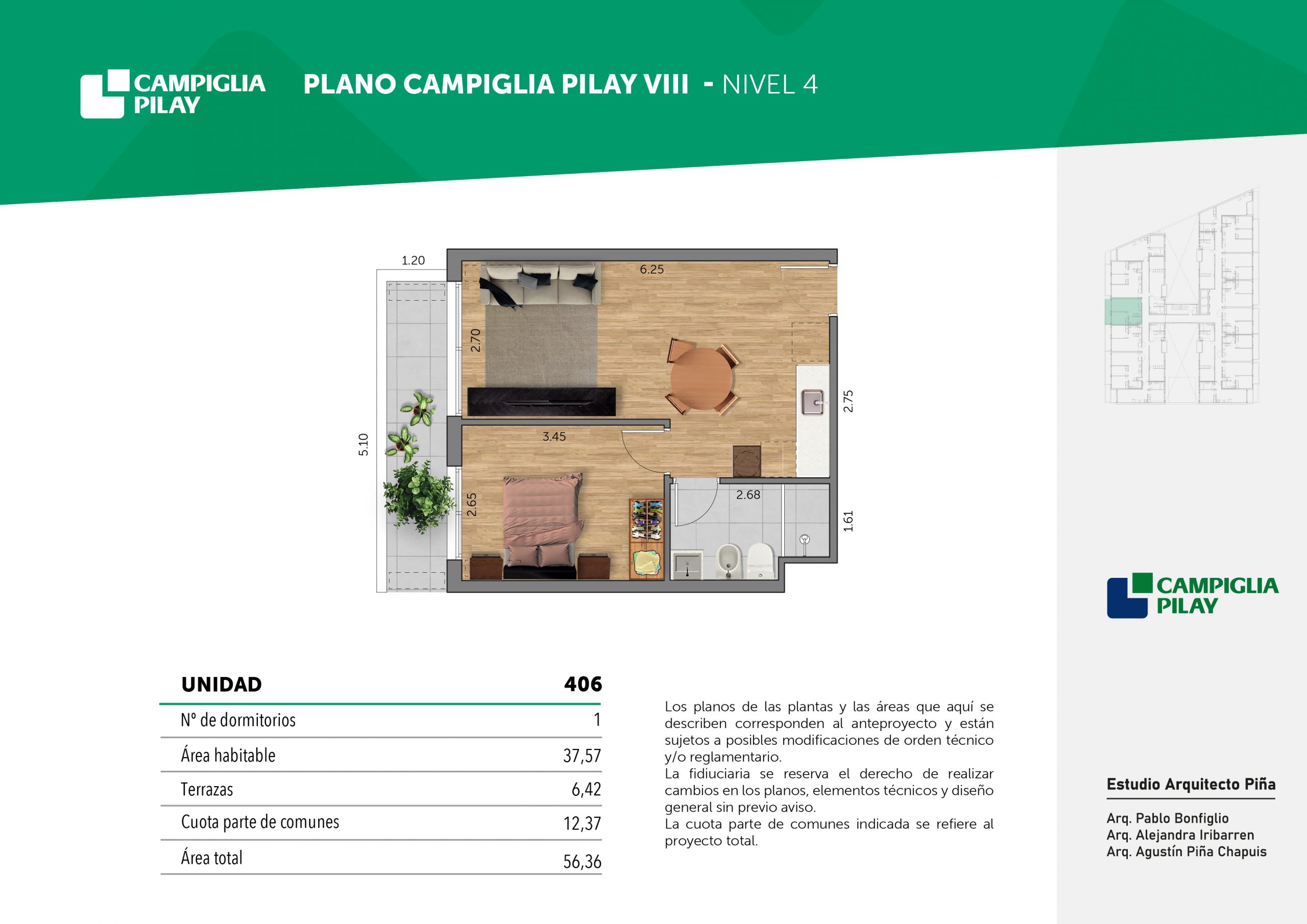 Cantidad de unidades en total: 195 unidades (159 unidades de 1 dormitorio y 46 unidades de 34 dormitorios) + 118 cocheras en total (aprox).