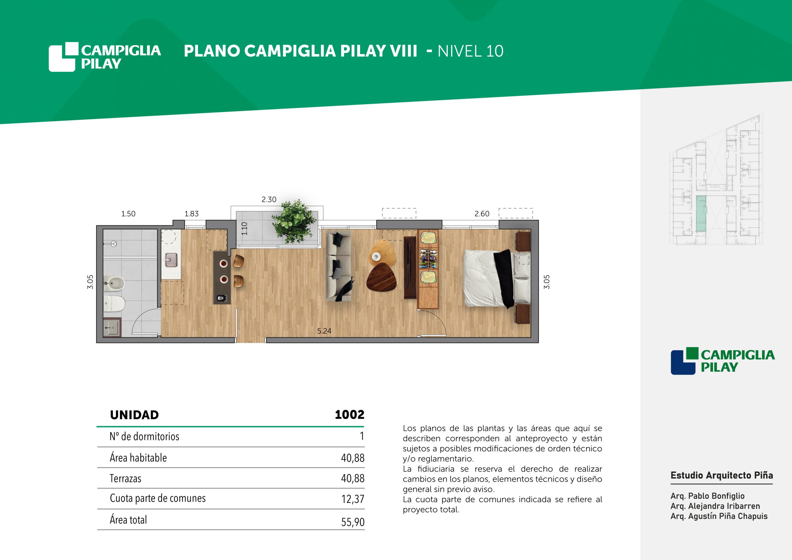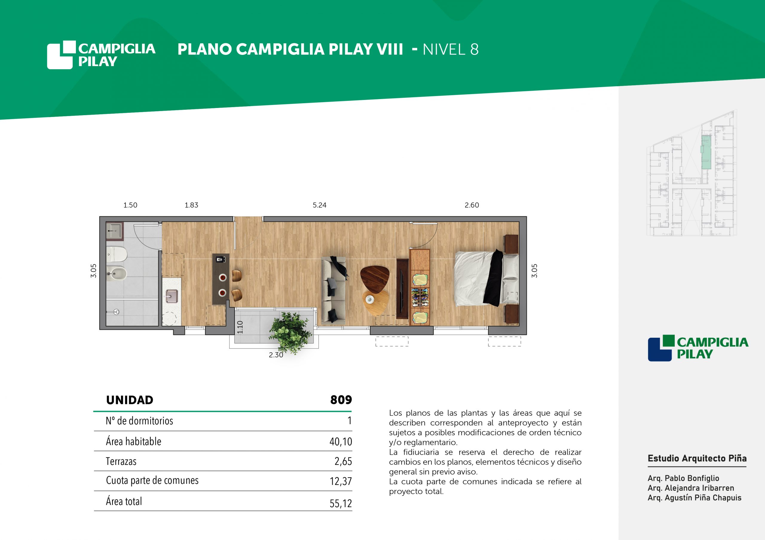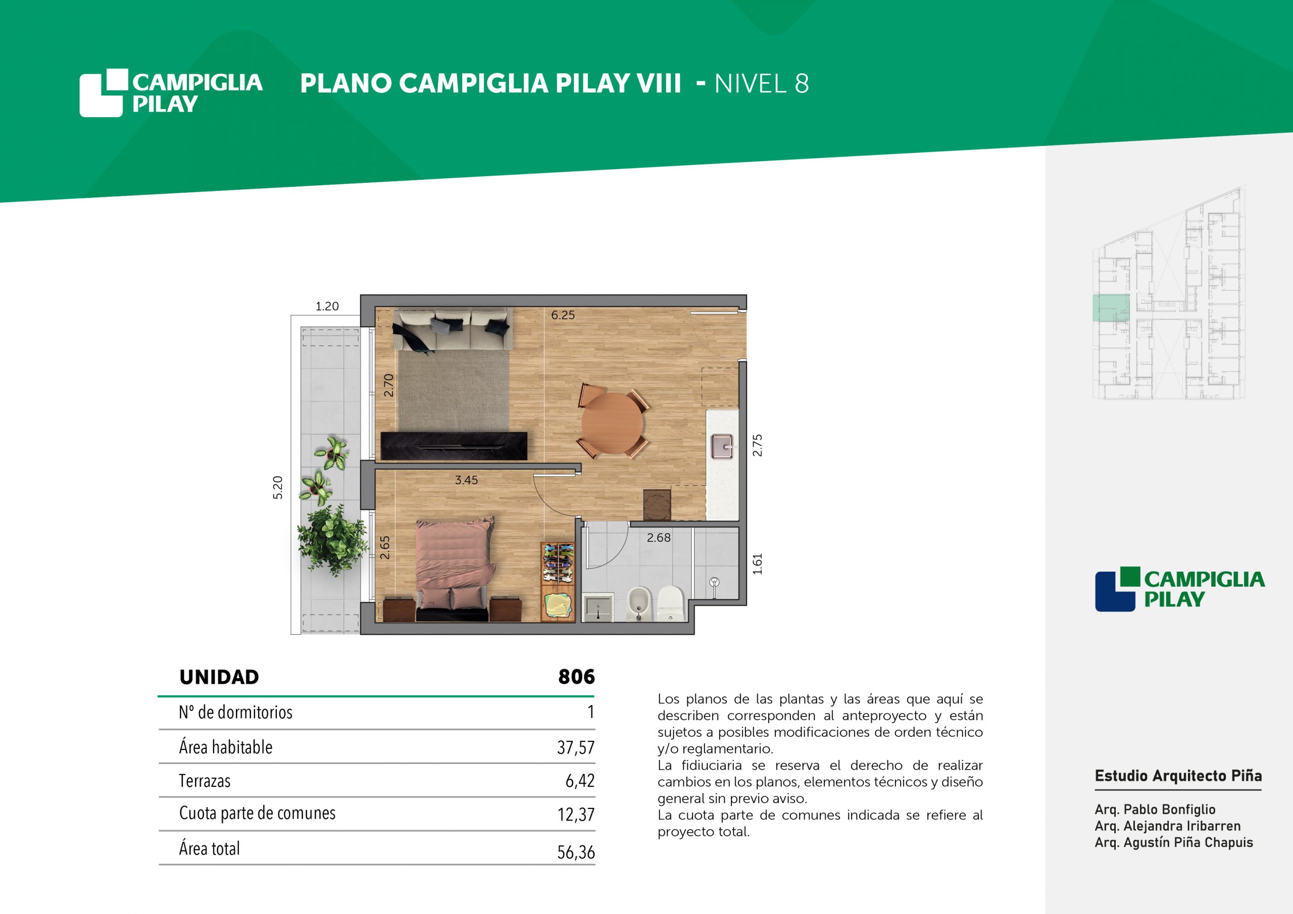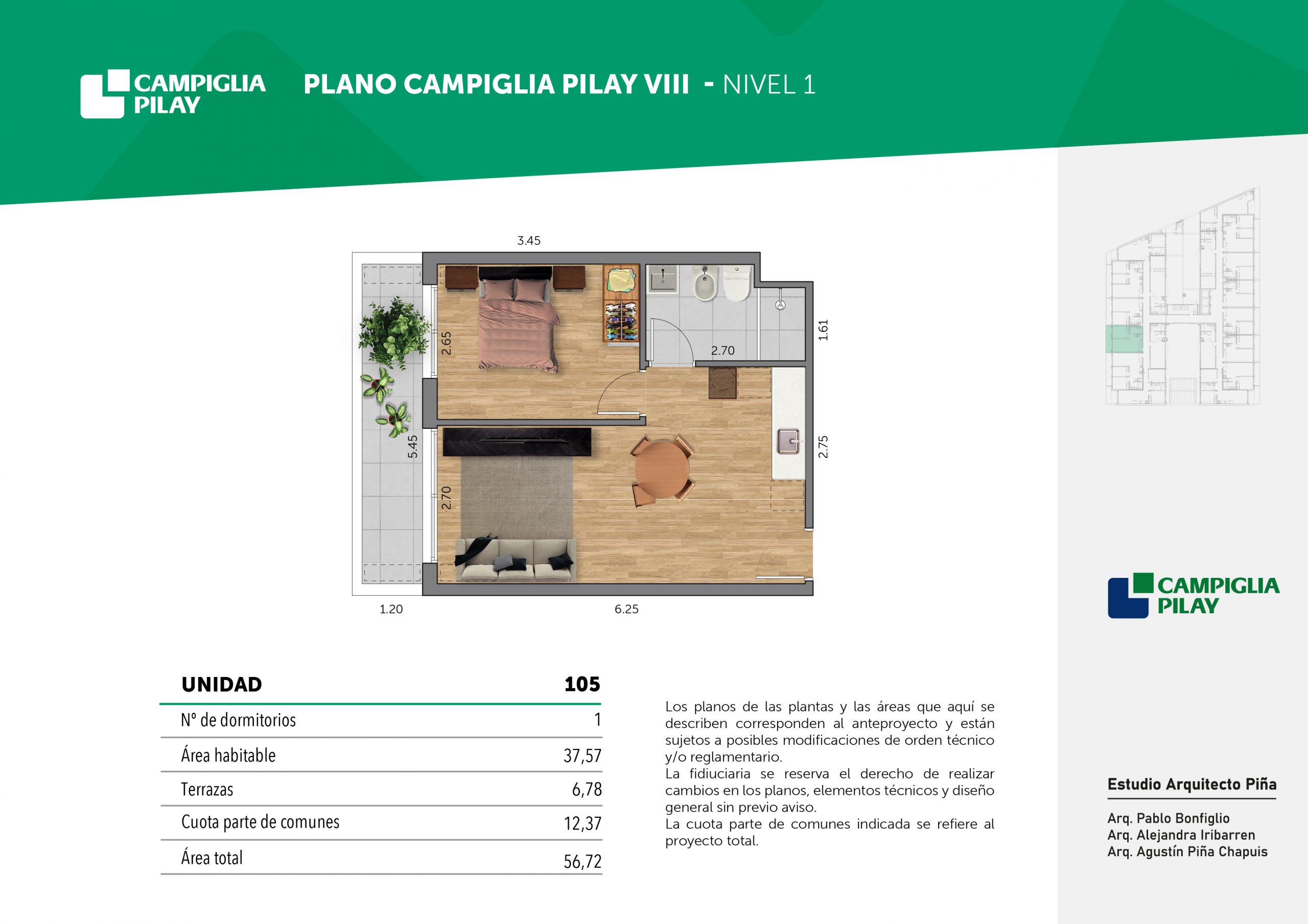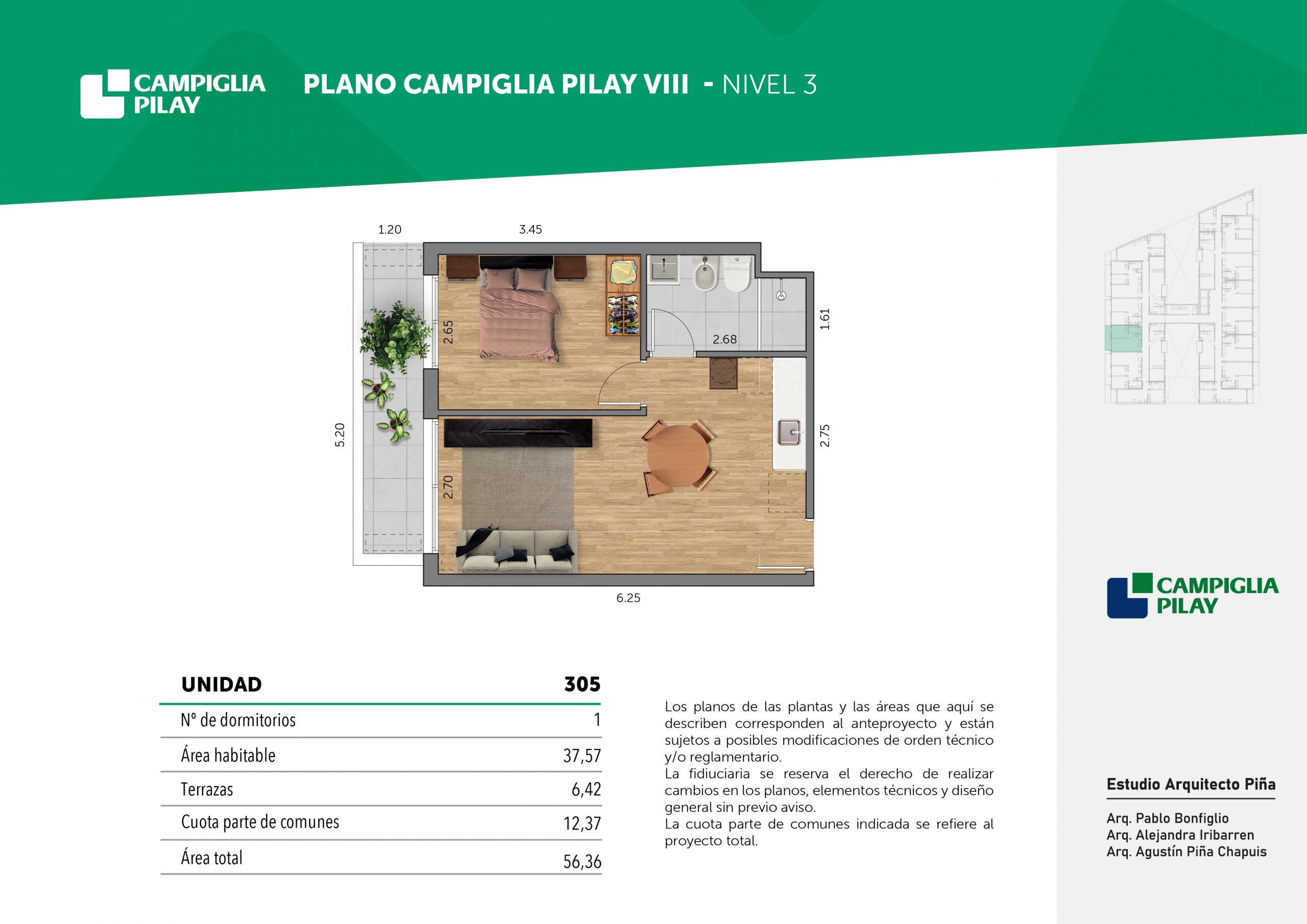 Cantidad de unidades en total: 195 unidades (159 unidades de 1 dormitorio y 46 unidades de 34 dormitorios) + 118 cocheras en total (aprox).