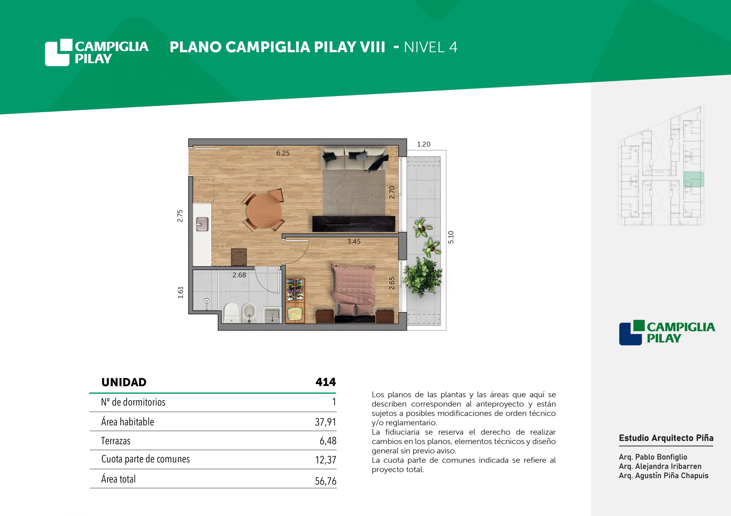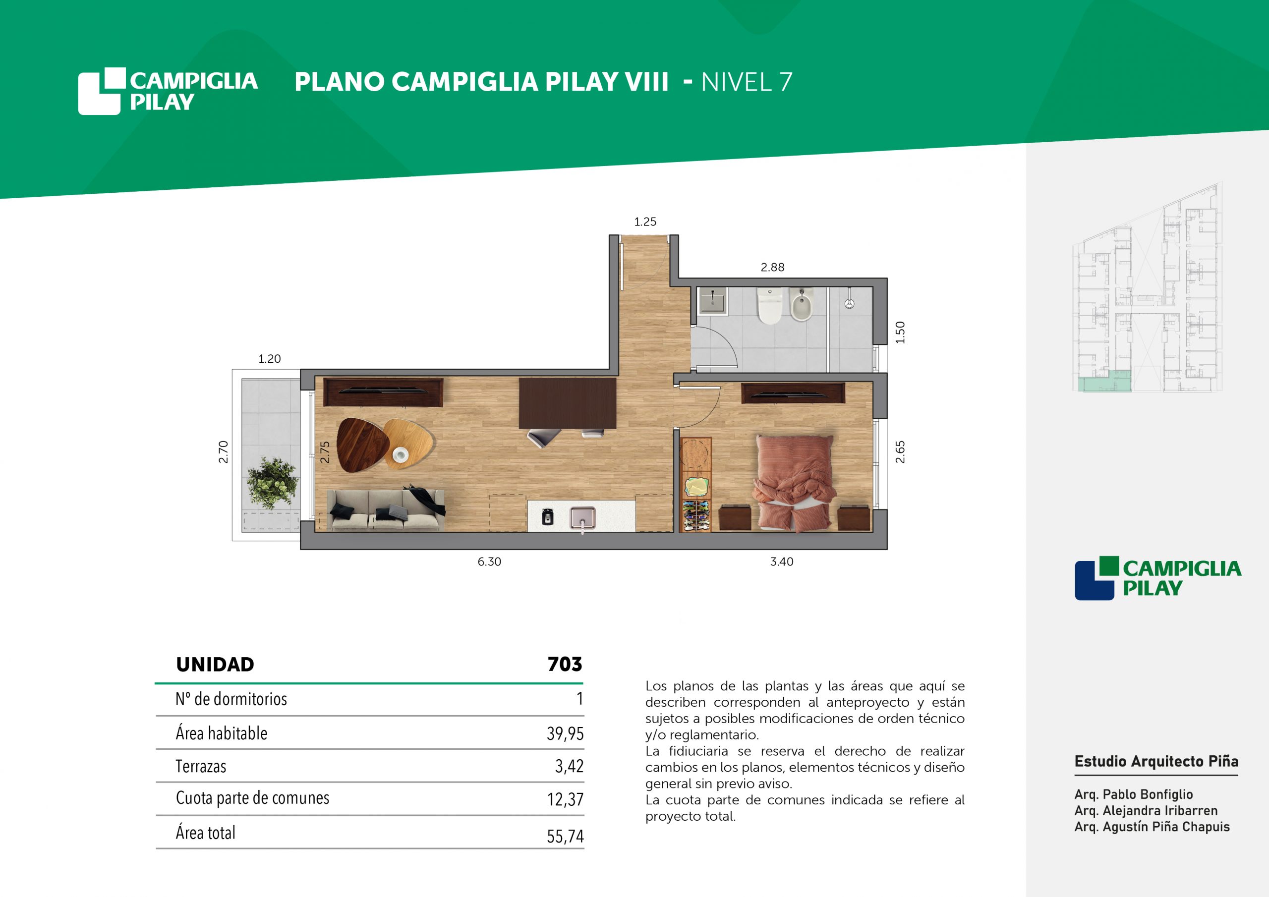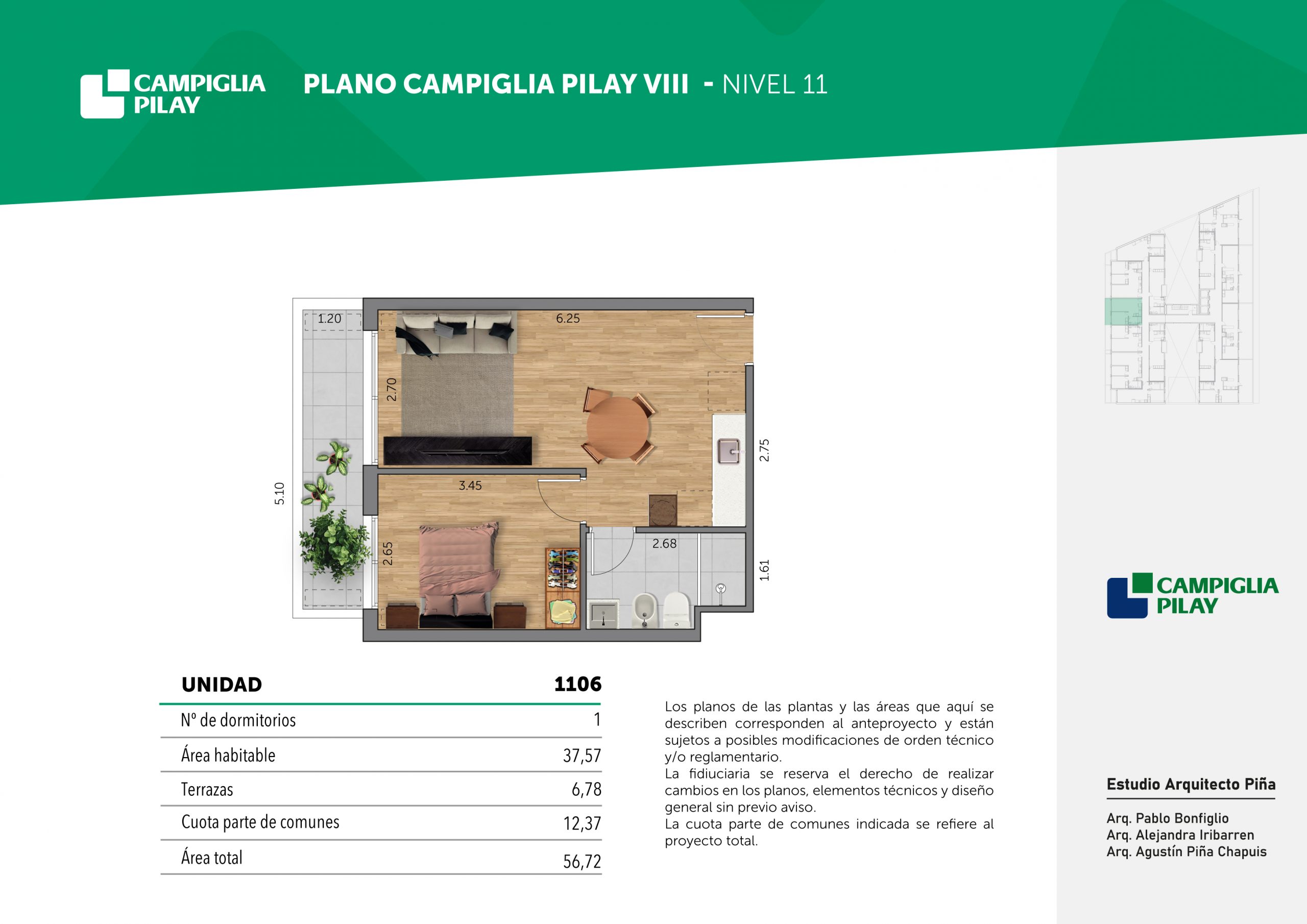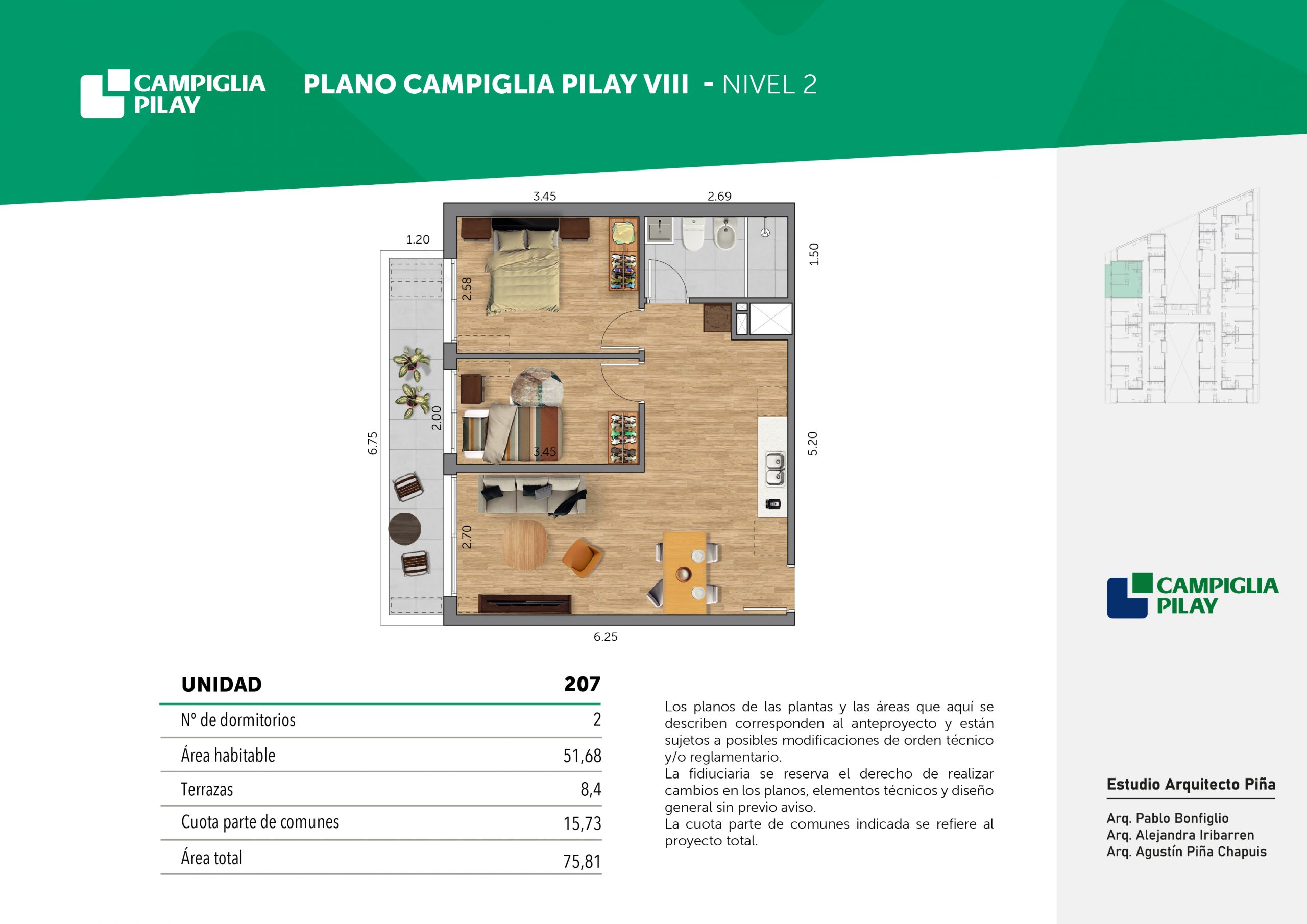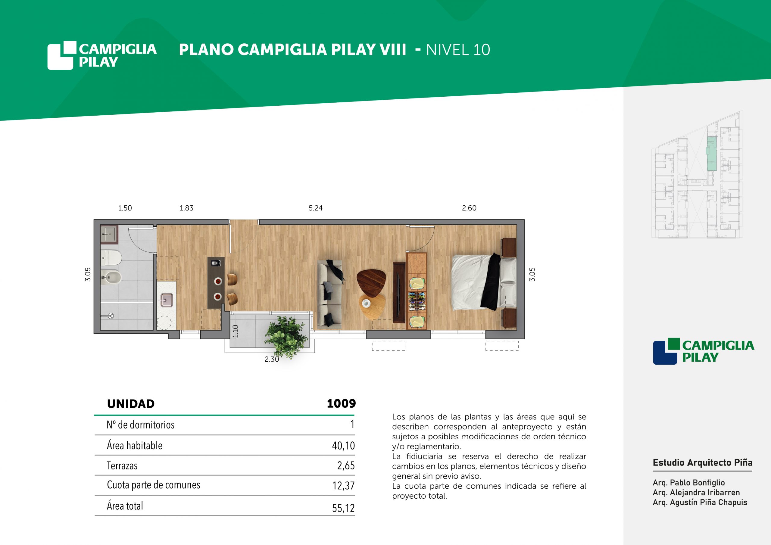 Cantidad de unidades en total: 195 unidades (159 unidades de 1 dormitorio y 46 unidades de 34 dormitorios) + 118 cocheras en total (aprox).