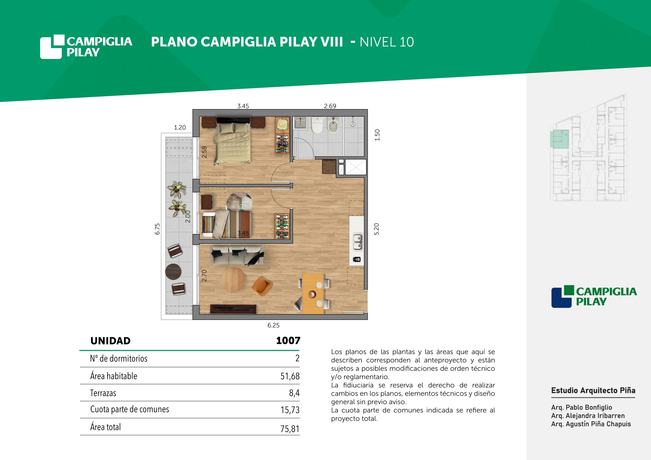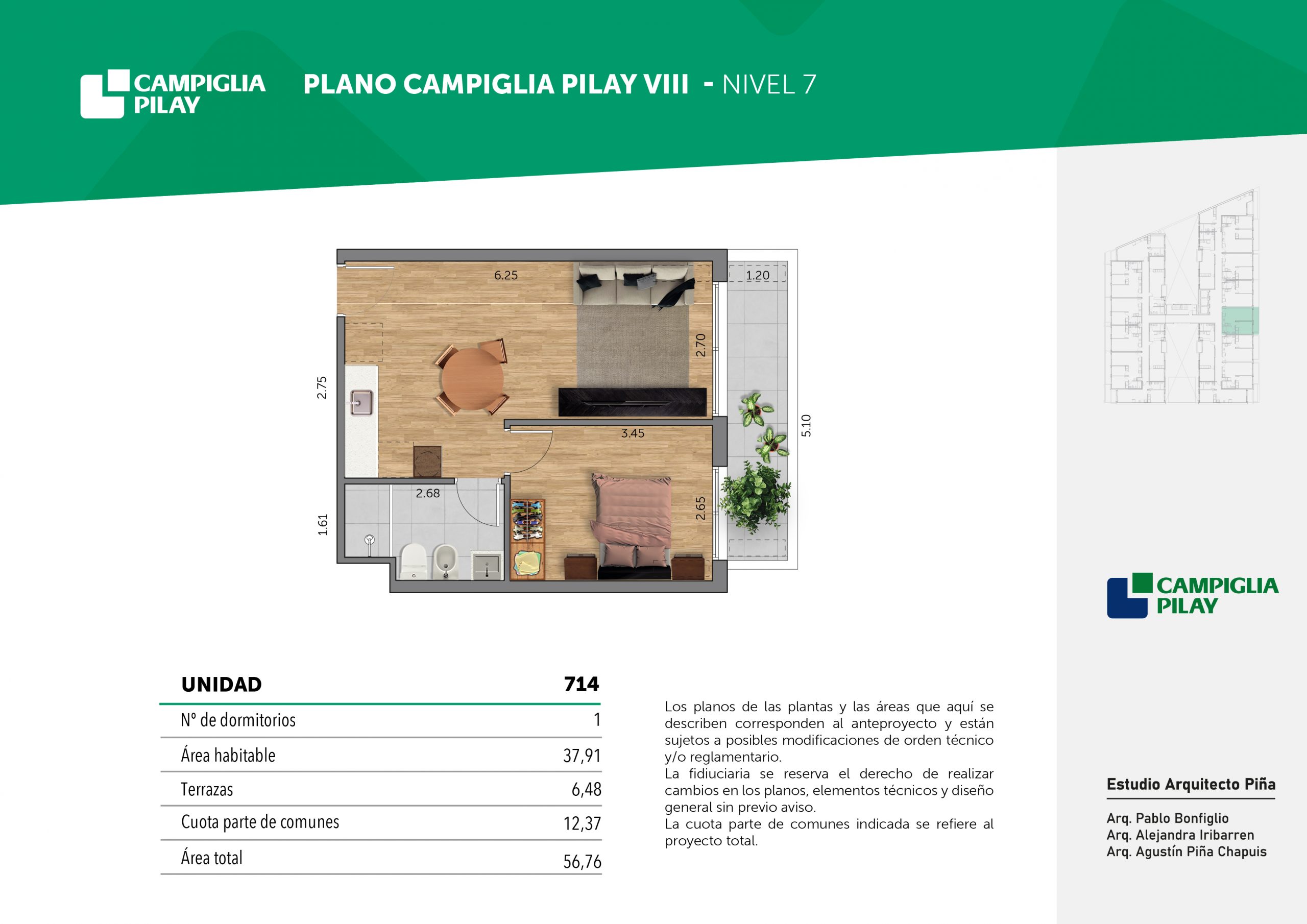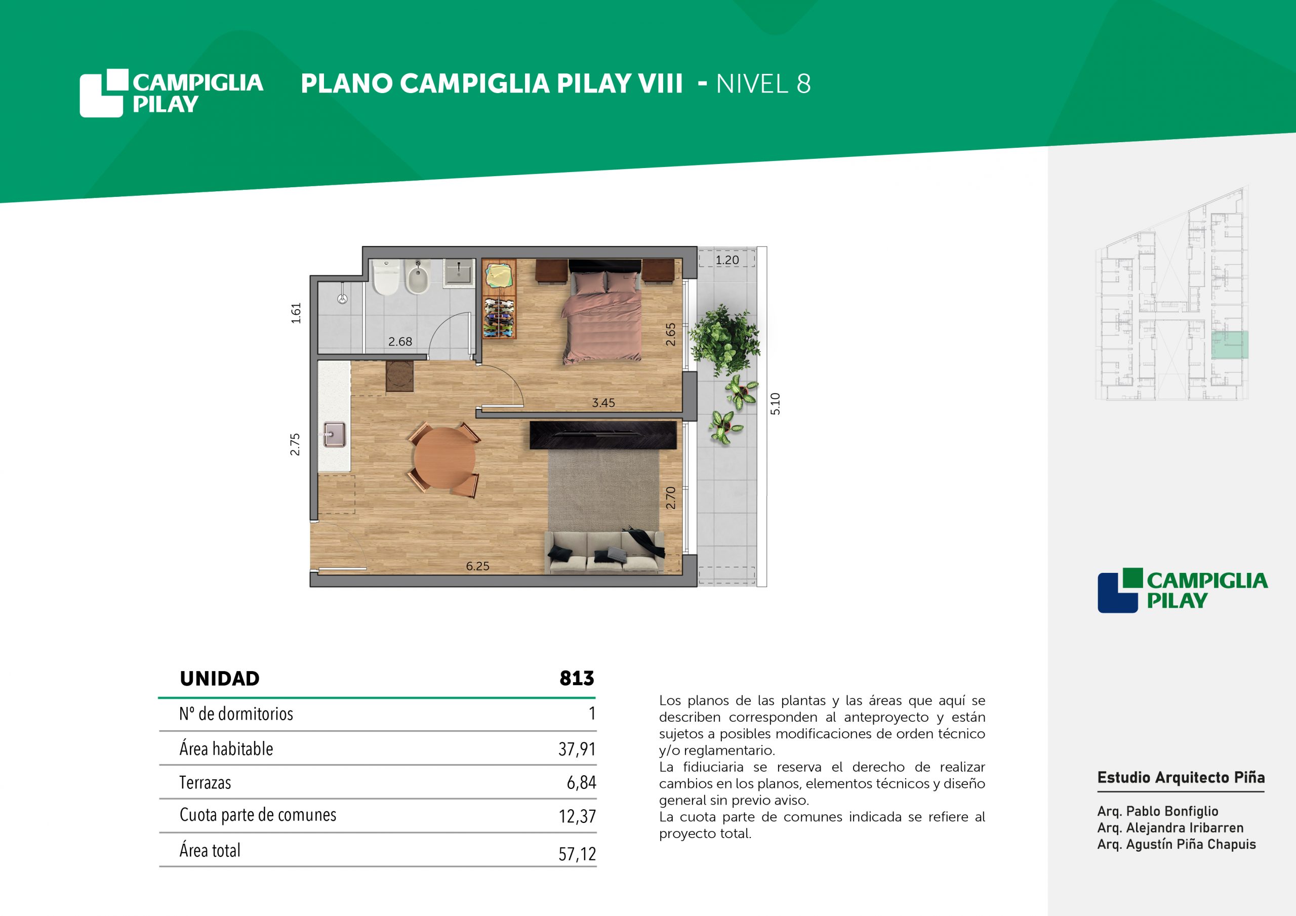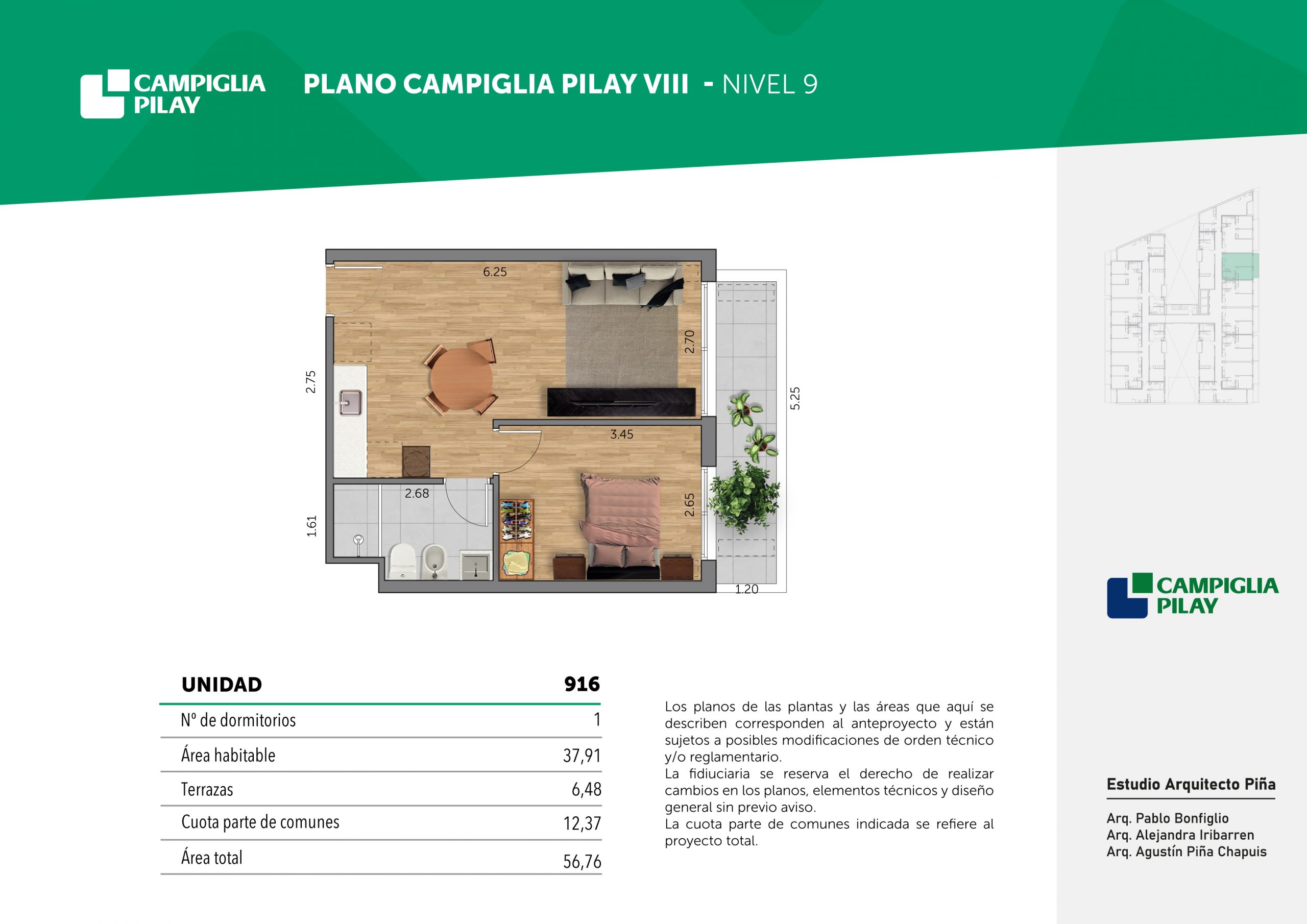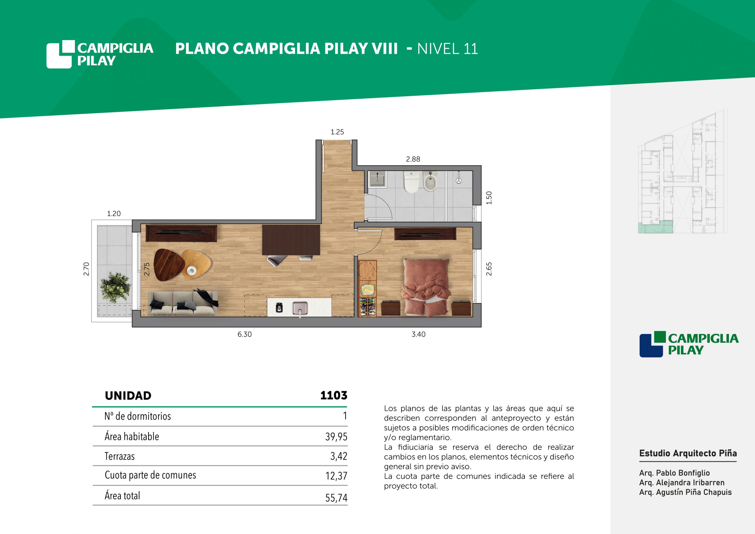 Cantidad de unidades en total: 195 unidades (159 unidades de 1 dormitorio y 46 unidades de 34 dormitorios) + 118 cocheras en total (aprox).